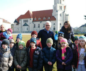 der Pfarre. Dort laufen gerade die Kinder der nahen Volksschule in ihrer Pausenzeit herum. Diese freuen sich, als sie ihren Pfarrer sehen. Und umgekehrt geht da das Salesianer-Herz so richtig auf. Er ruft ihnen das wohl berühmteste Don-Bosco-Sprichwort zu: „Das Beste, was wir auf der Welt tun können, ist Gutes tun, fröhlich sein und die Spatzen pfeifen lassen.“